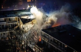 海牙:周六,海牙一幢三层公寓楼在火灾和爆炸后部分倒塌,消防队员说,第一批...